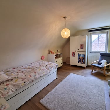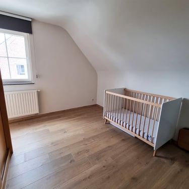 Op de 2e verdieping vinden we terug een aparte nachthal en toegang tot 2 afgewerkte kamers + bergzolder/ technische ruimte. Technieken werden hier geplaatst om garage maximaal te kunnen benutten!