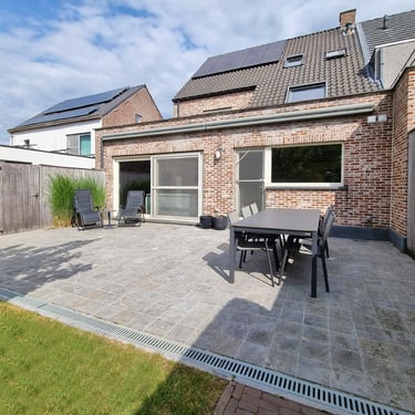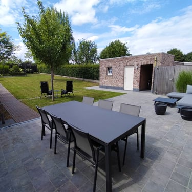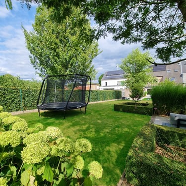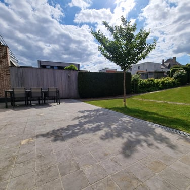 Als kers-op-de-taart beschikt deze prachtige gezinswoning over een compleet aangelegde tuin en terras(sen). De tuin is volledig omheind, met aparte toegang via het houten zij-poortje. Groot terras tegen de woning met tal van gezellige hoekjes waar het geweldig vertoeven is. Altijd super onderhouden met groot gazon en diverse planten en bomen (=Japanse sierkers, Zwarte berk,…)